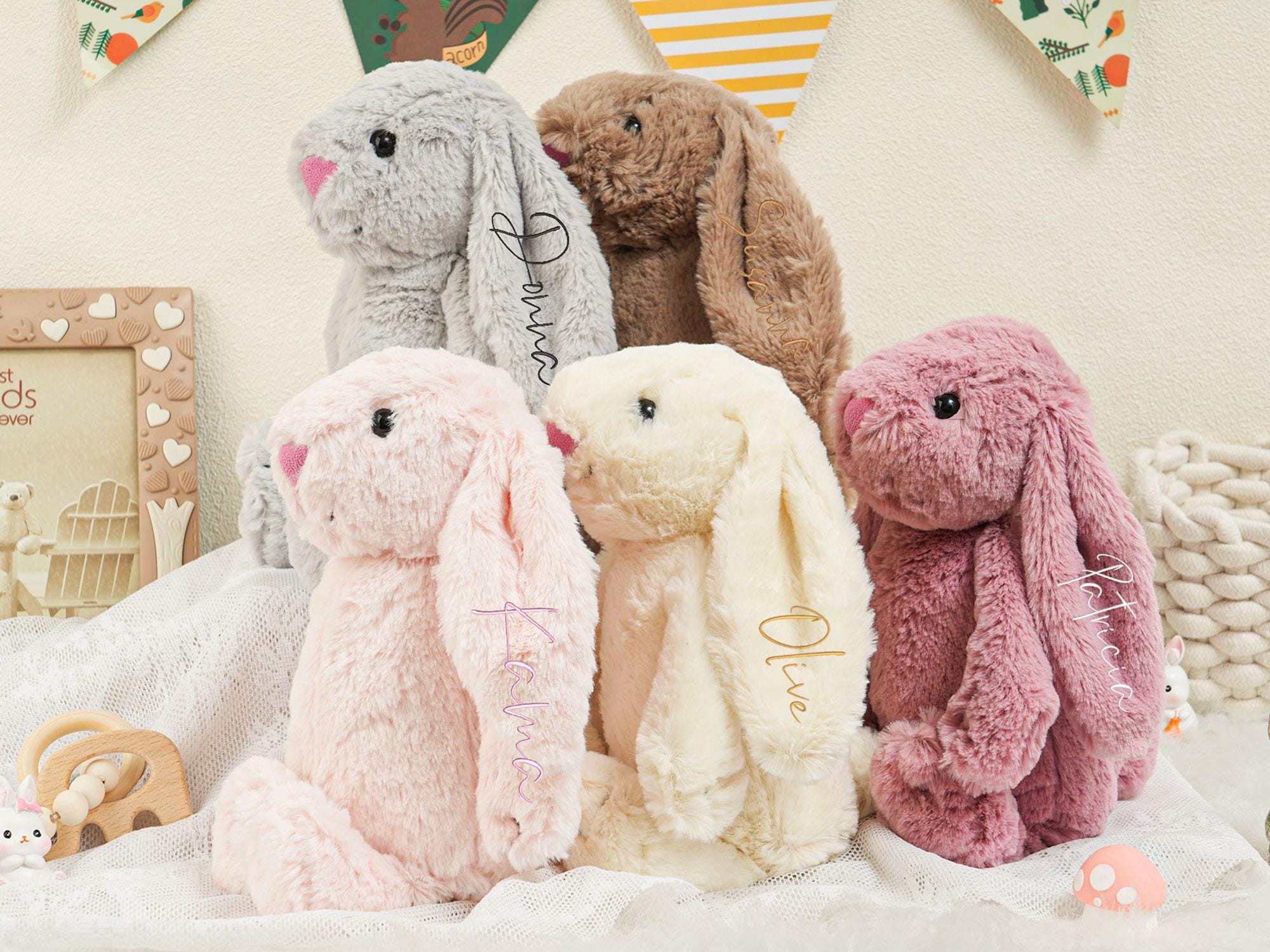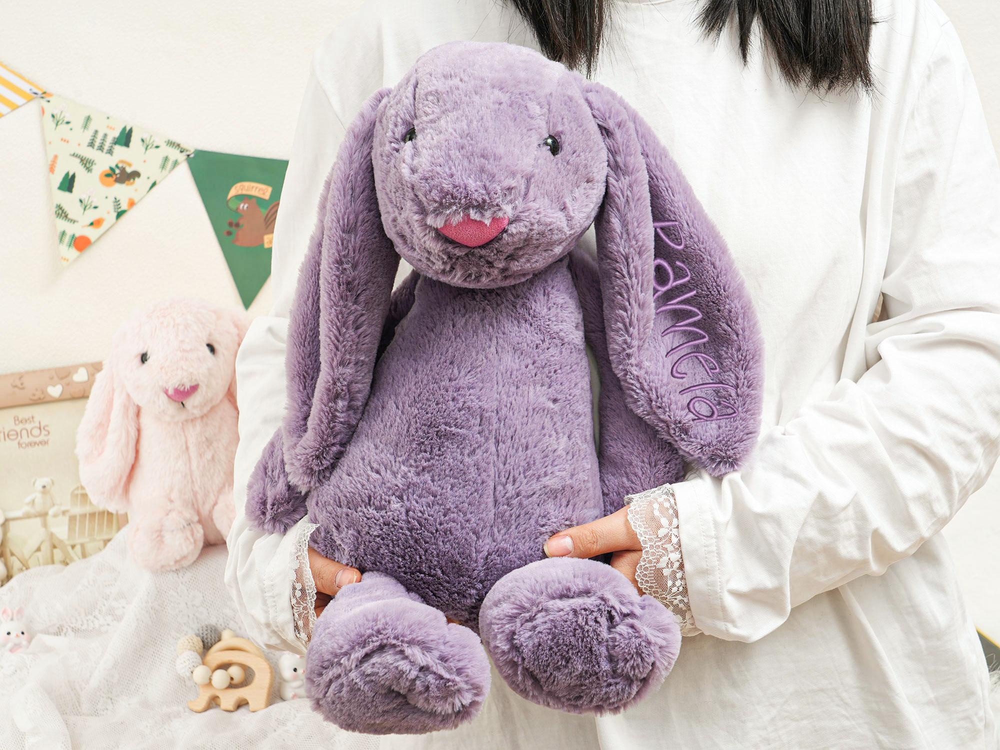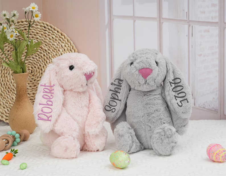 This personalized bunny makes a wonderful Easter or birthday gift for kids and newborns. It's a thoughtful way to celebrate the holiday while providing a lasting toy that can be cherished for years.