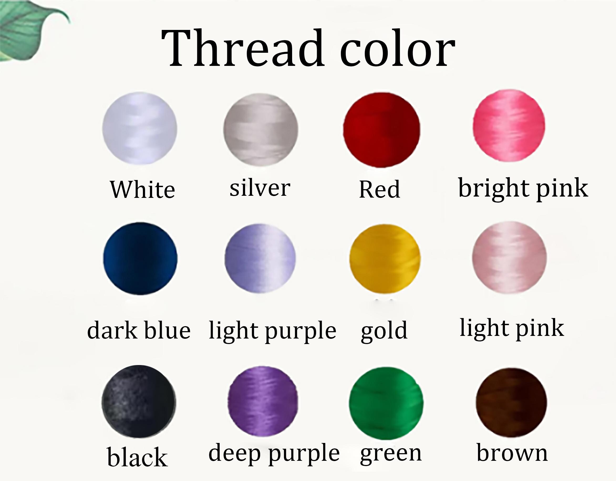 Embroidery can be customized according to personal preferences: please refer to our embroidery thread diagram and font renderings