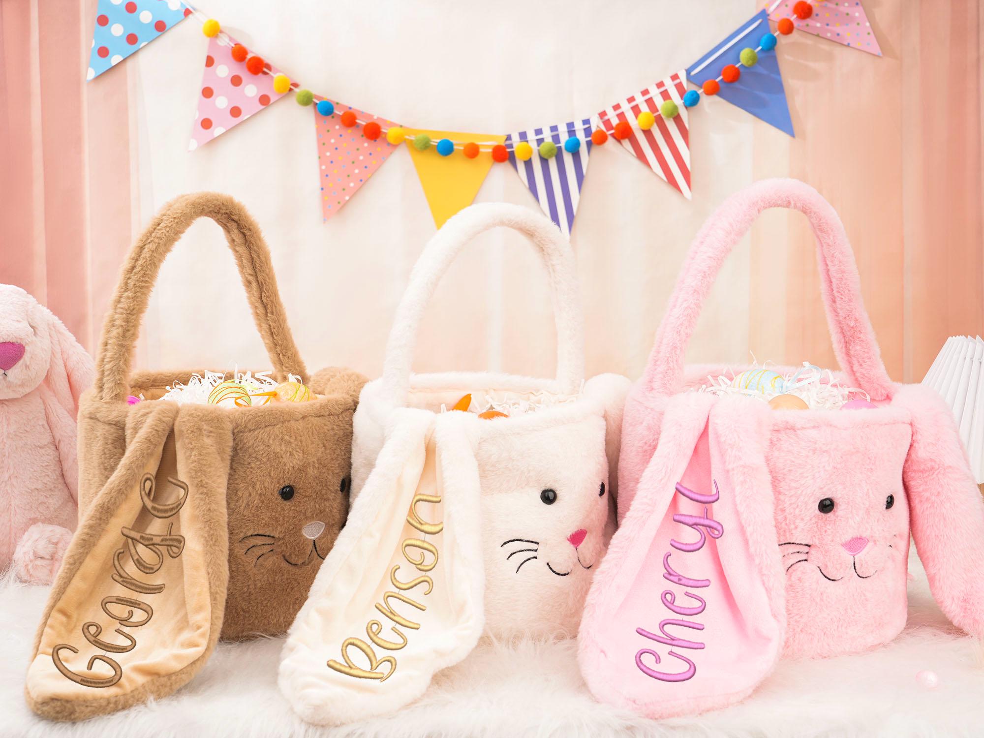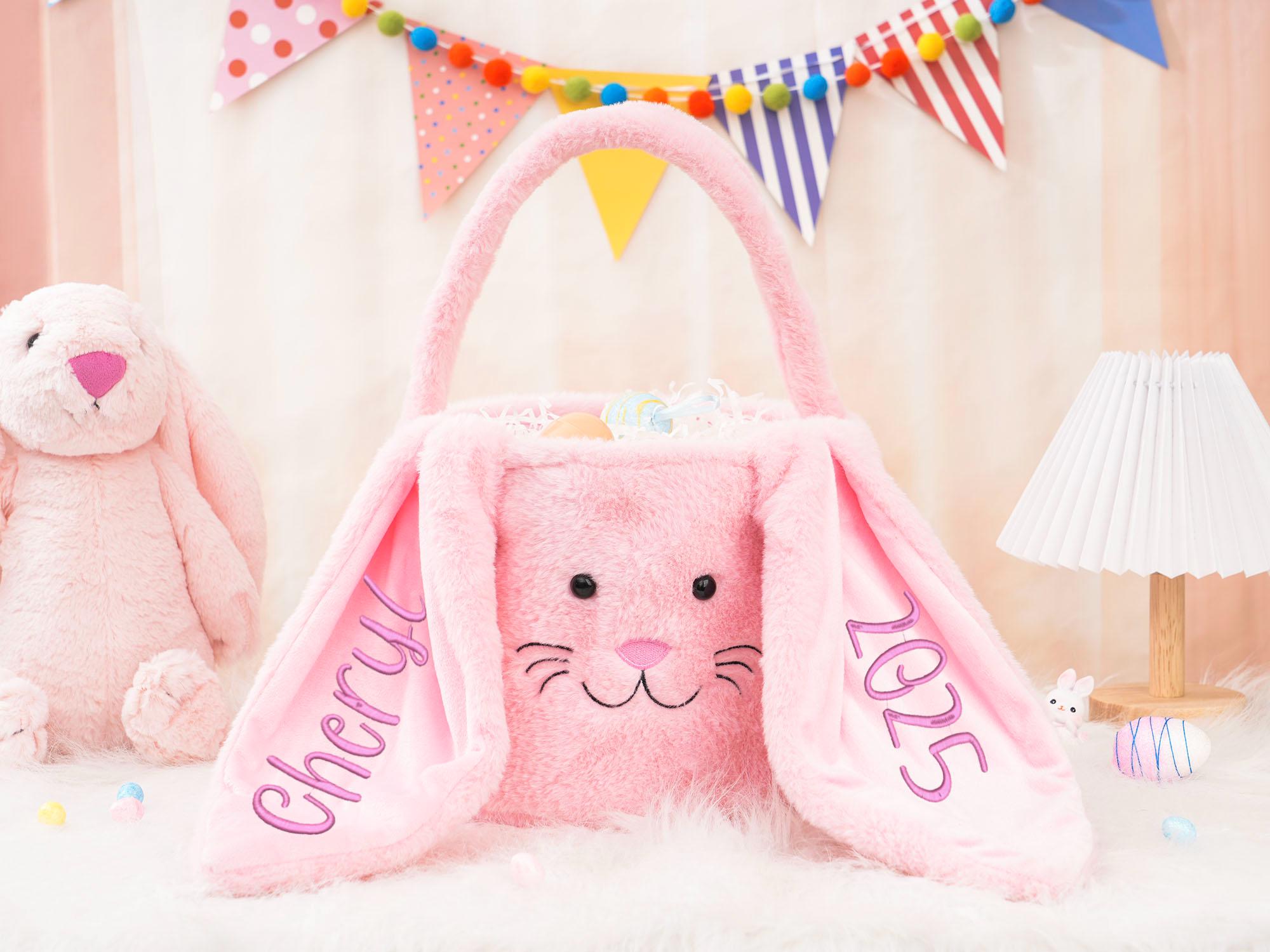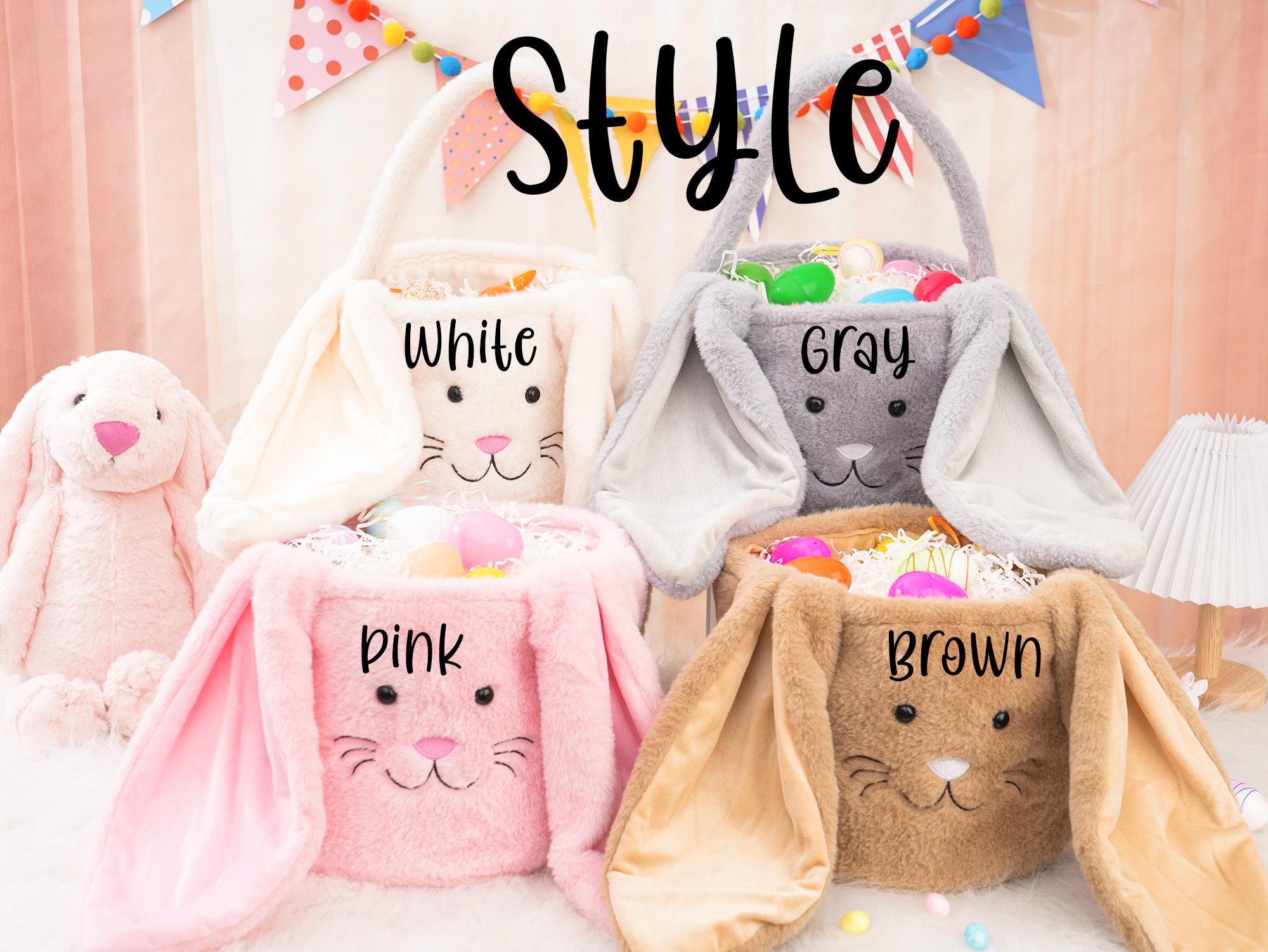 Personalized Plush Easter Basket For Kid,Embroidered Name Easter Bucket,Bunny Basket With Name,Custom Easter Bag,Easter Gift for Girls Boys