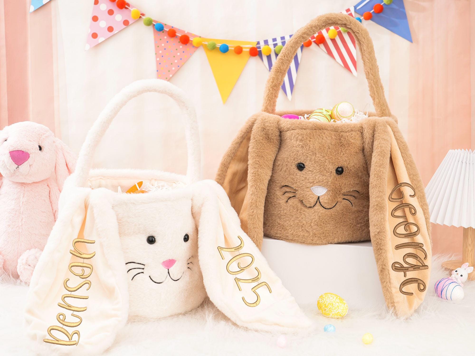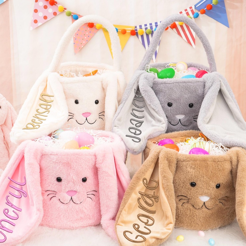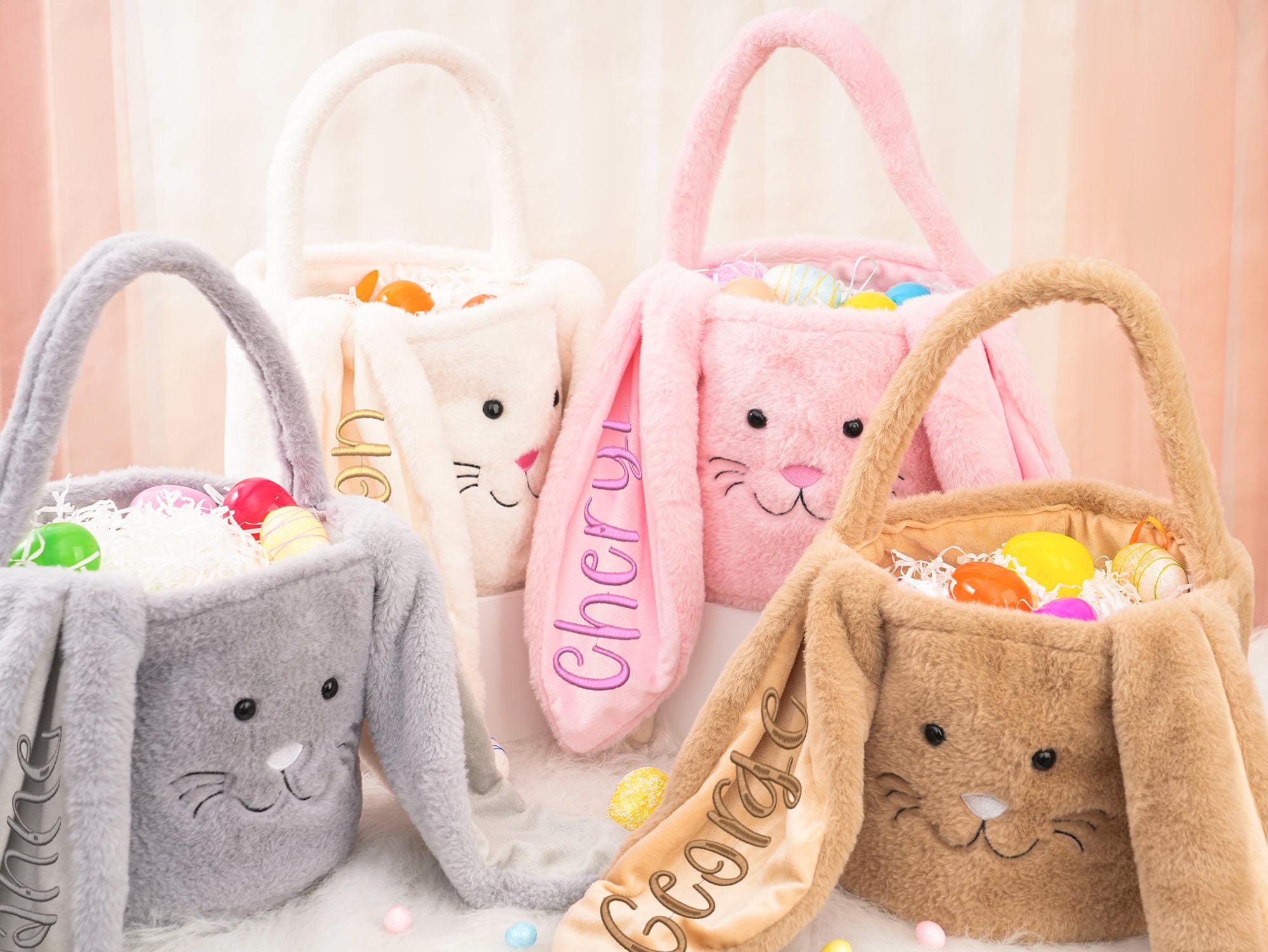 Personalized Plush Easter Basket For Kid,Embroidered Name Easter Bucket,Bunny Basket With Name,Custom Easter Bag,Easter Gift for Girls Boys