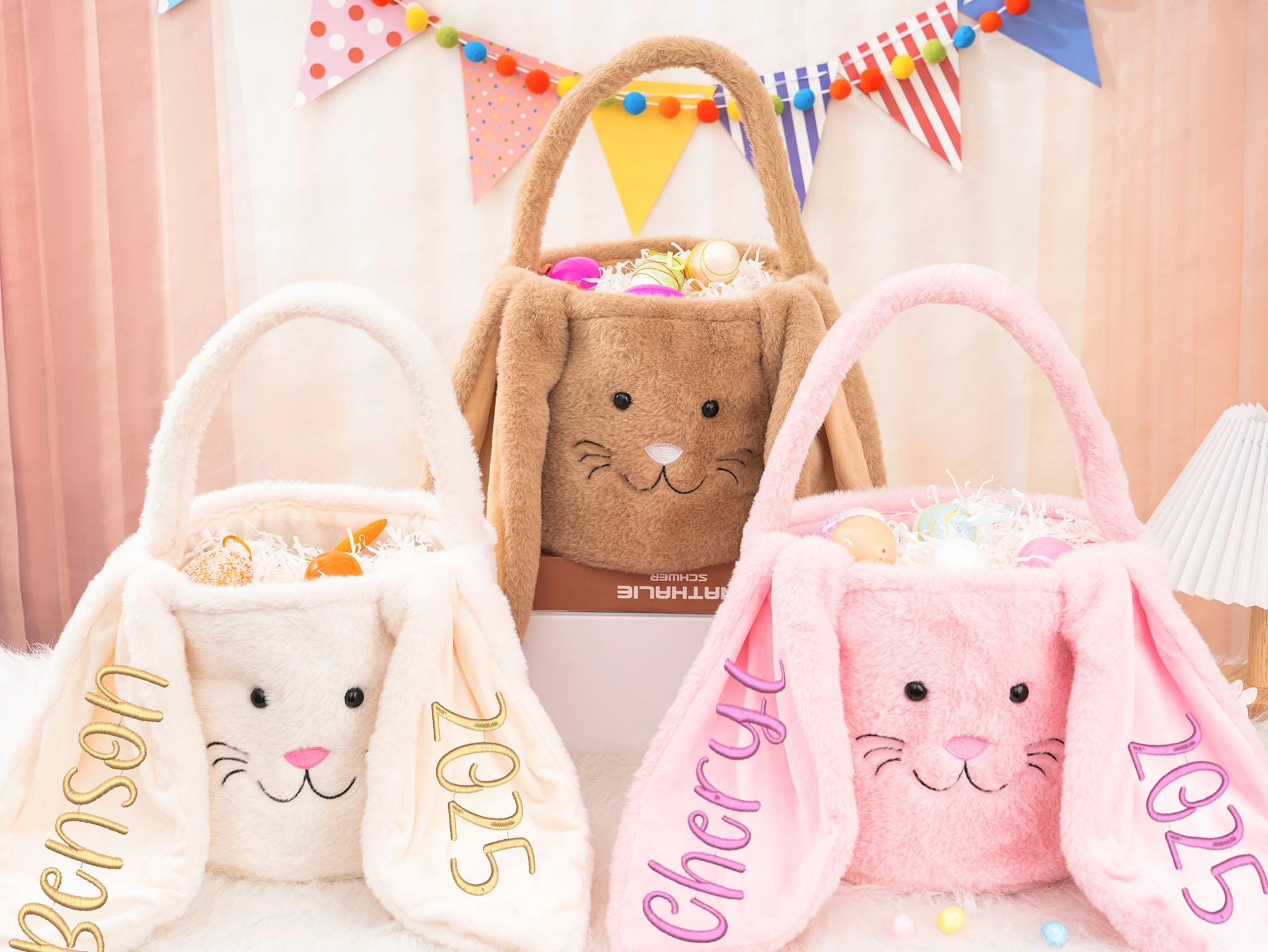 Embroidered Easter Bunny Basket,Personalized Plush Easter Basket,Custom Easter Bag With Name,Easter Gifts for Kids,Stuffed Bunny Basket