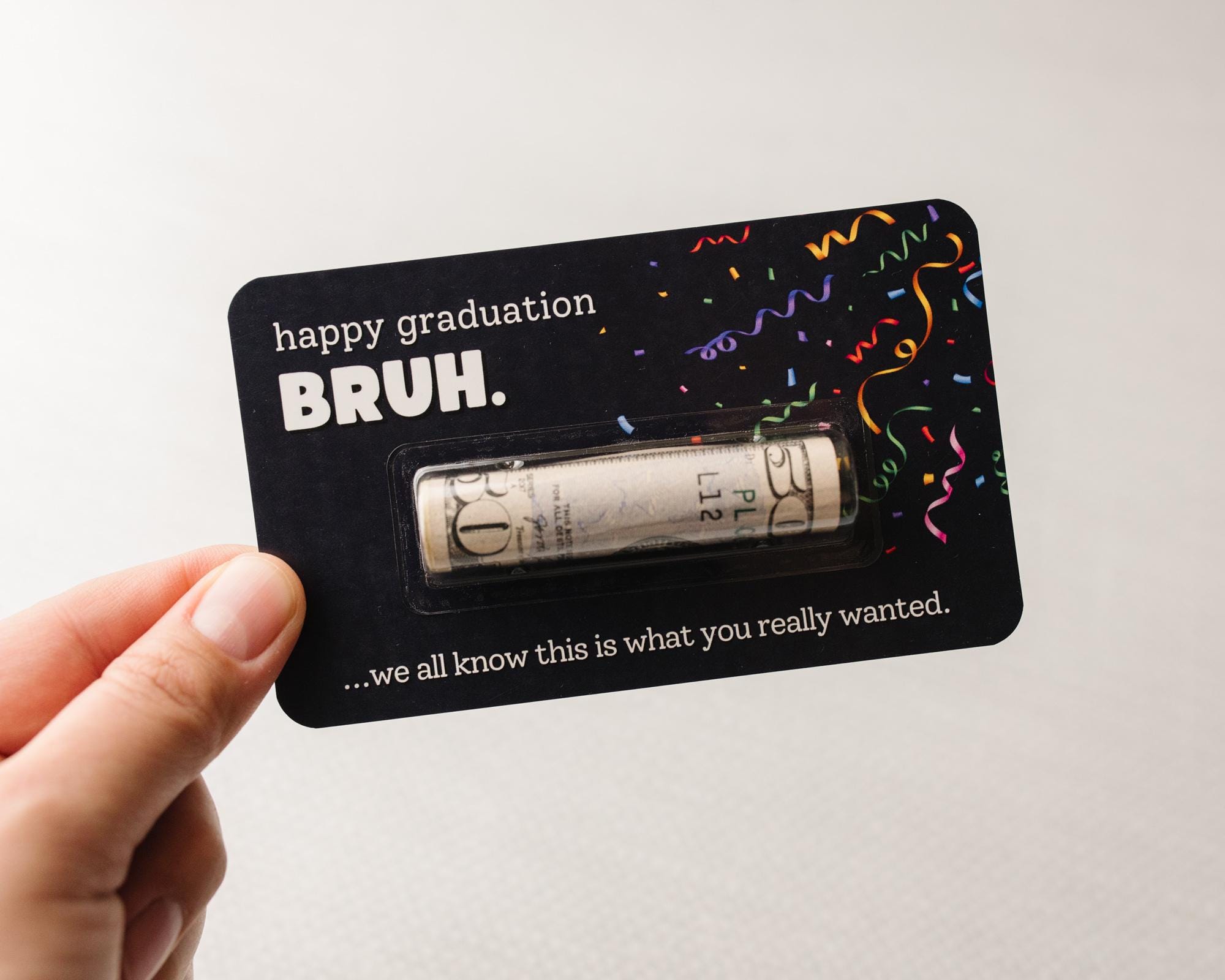- Happy Graduation Bruh (black with colored confetti ribbons) - we all know this is what you really wanted.